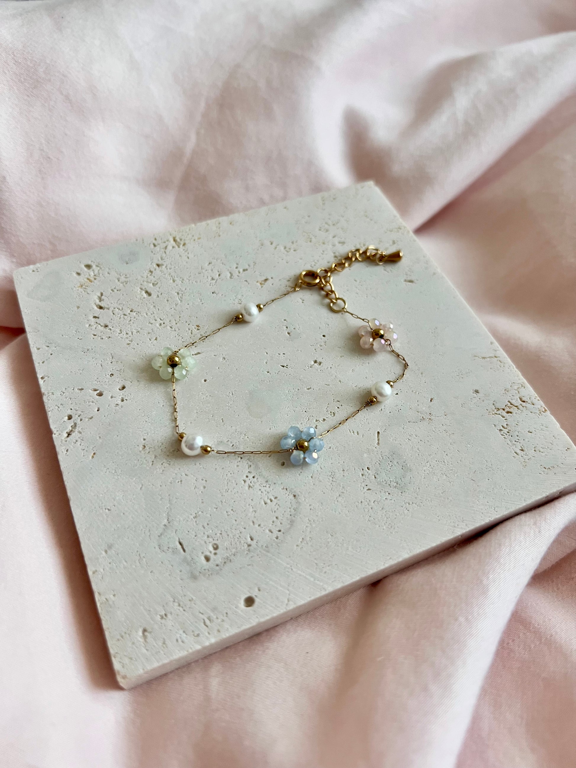 Multiple Flower Beaded Bracelets Stainless Steel
